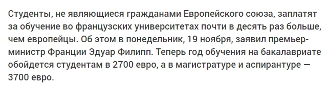 У меня правда в голове одна мысль: "Я успела!" Этот год - мой последний, дальше учиться я не буду. А значит, меня это уже не коснется. В том году я заплатила 570 евро (45 000 руб), в этом 450.